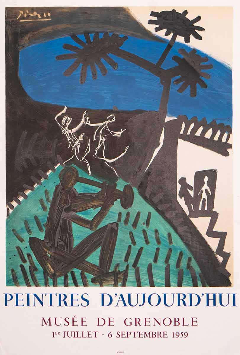 The oil painting reproduced on this poster was painted by Picasso in Cannes on August 20, 1956, shortly before his seventy-fifth birthday. During this period, the artist painted his famous series of studios inspired by the salon of his villa “La Californie,” which was filled with his works and furniture he had brought from his former studio on the rue de Boétie in Paris.