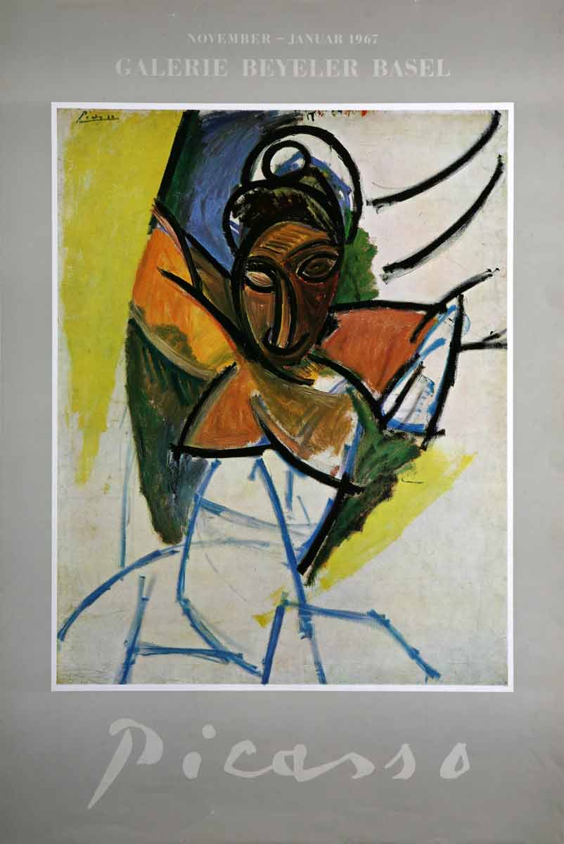 According to Pierre Daix, the work reproduced on the poster is most likely from the period when Picasso was working on “Les Demoiselles d’Avignon”, and was possibly made in the second stage of the work, when Picasso painted the final version. Daix stresses the considerable importance of Picasso’s output in the spring and summer of 1907. It was then that he painted “Bust of a Woman with Raised Hands”, “Bust of a Woman with a Large Ear” and “Head and Shoulders of a Sailor”: “These paintings demonstrate a prodigious liberation of painting, literally day by day, without the slightest interruption, burning through all the stages to create paroxysms never before achieved, or even imagined.”