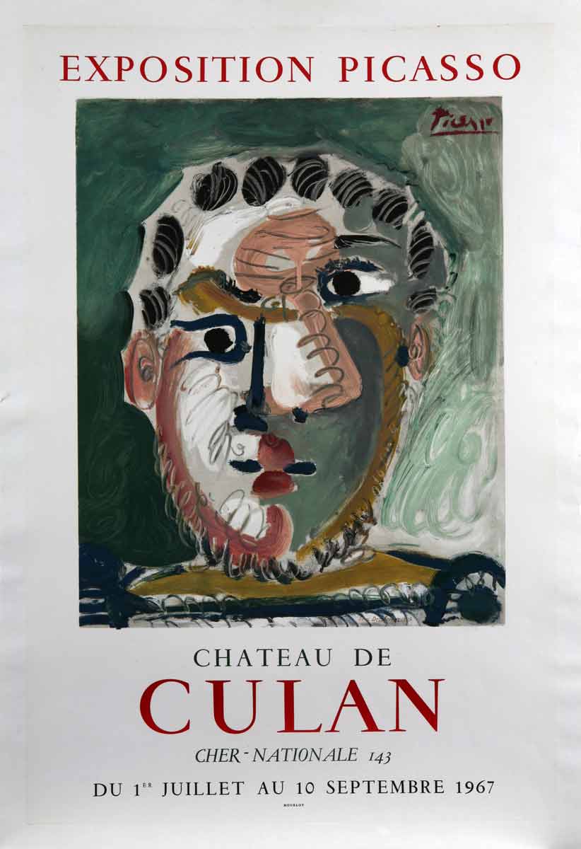 They are characterized by having been executed with rapid strokes, with that urgency that can be seen in Picasso’s later years, sometimes using cubist forms to achieve expression and resorting to almost peaceful deformations in which brushstrokes predominate over the outlined form. The chromaticism is rather subdued and based on few colors. In the case of the image reproduced in this poster, we see a disheveled character, with an unkempt beard, a full face, a fixed expression accentuated by the irregularity with which the eyes are placed. The head is outlined with thick dots, the contour of the face is diffuse, not very clear, executed in various shades of the same color.