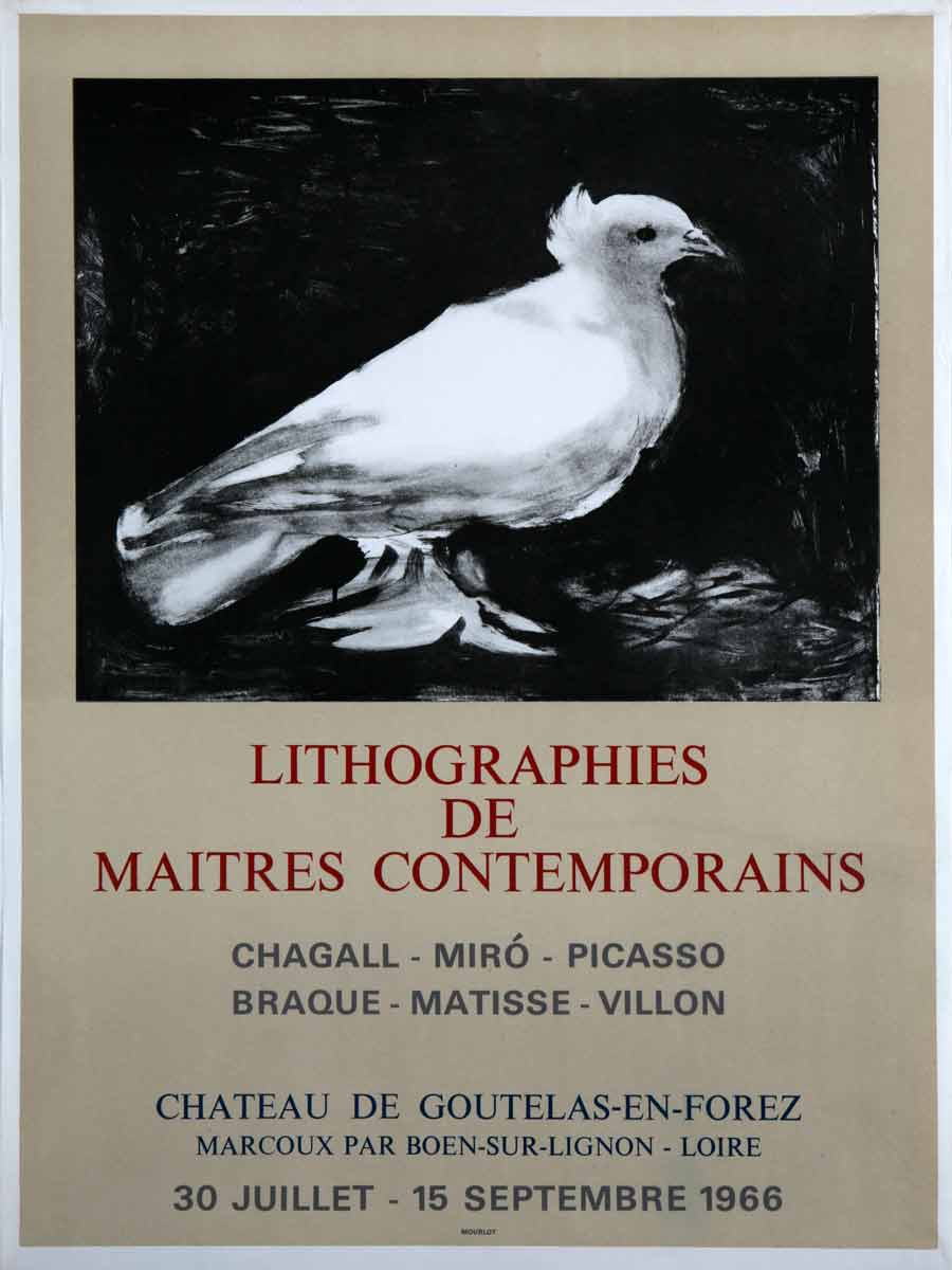 Esta litografía también se ha utilizado como motivo en otros carteles. Este cartel litográfico fue diseñado para promover una exposición de litografías de Maestros Modernos (contemporáneos en ese momento) en el Castillo de Goutelas en 1966.